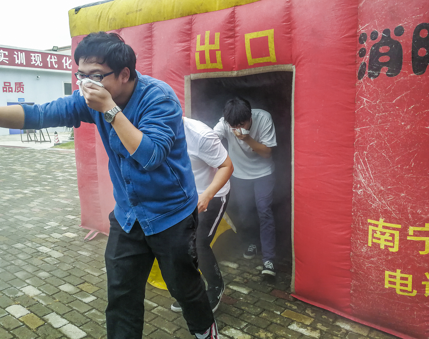 圖四為現(xiàn)場體驗(yàn)逃生演練。