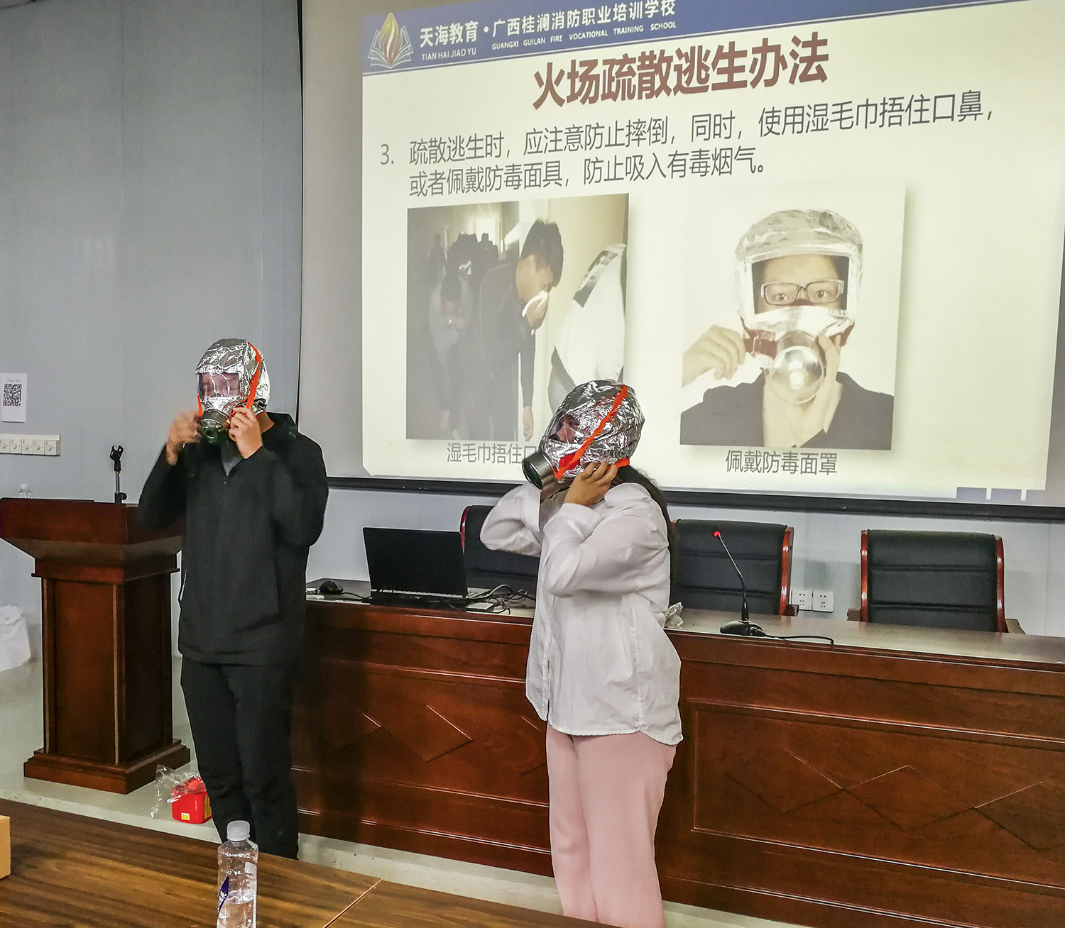圖二為現(xiàn)場體驗(yàn)佩戴防毒面具。