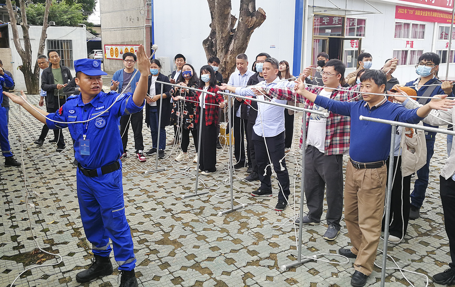 隨后,老師開展了逃生繩結(jié)教學(xué),既講解了繩結(jié)在逃生過程中的重要性,又手把手教大家打繩結(jié)的要領(lǐng)和方法。大家積極參與、認(rèn)真體會,跟著老師學(xué)會學(xué)懂各種繩結(jié)打結(jié)方法和逃生技巧。