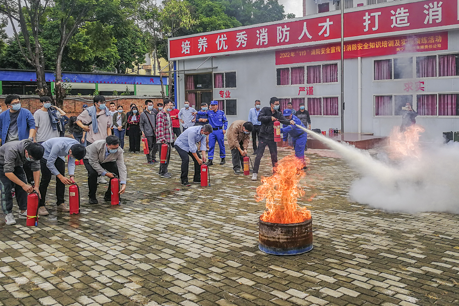 為全面提升排水公司消防安全管理和消防知識教育能力。11月18日,公司領(lǐng)導(dǎo)、公司各部門、分公司負(fù)責(zé)人、員工代表、第二黨支部黨員共49人走進(jìn)興寧區(qū)邕武路16號廣西桂瀾消防職業(yè)培訓(xùn)學(xué)校,開展以“抓消防安全,保高質(zhì)量發(fā)展”為主題的“119”消防宣傳月培訓(xùn)活動。
